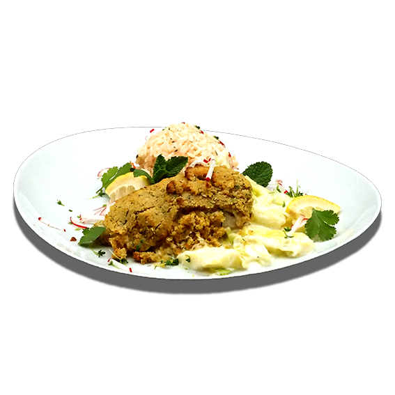 Gebratenes Seelachsfilet mit Dill-Senfkruste