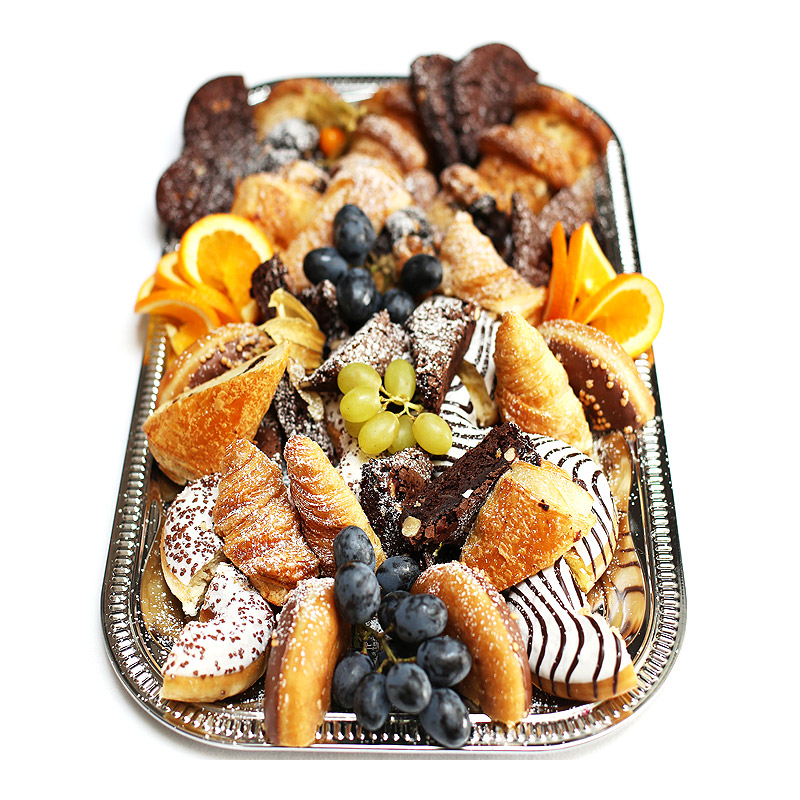 - Süße Platten mit Donuts, Muffins, Schokocroissants, Cookies