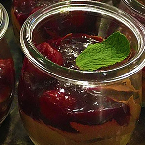 Mousse au Chocolat mit Kirschgrütze im Glas